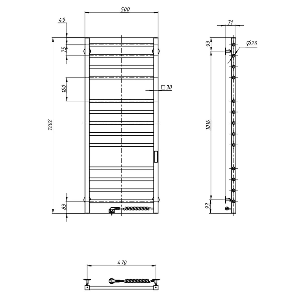 Ця рушникосушка не лише функціональна, а й стійка до корозії, що забезпечує тривалий термін експлуатації. Її параметри: висота — 1200 мм, ширина — 500 мм, глибина — 71 мм. Рушникосушка Quadro має 13 перекладин, що забезпечує ідеальні умови для сушіння навіть великої кількості текстильних виробів.