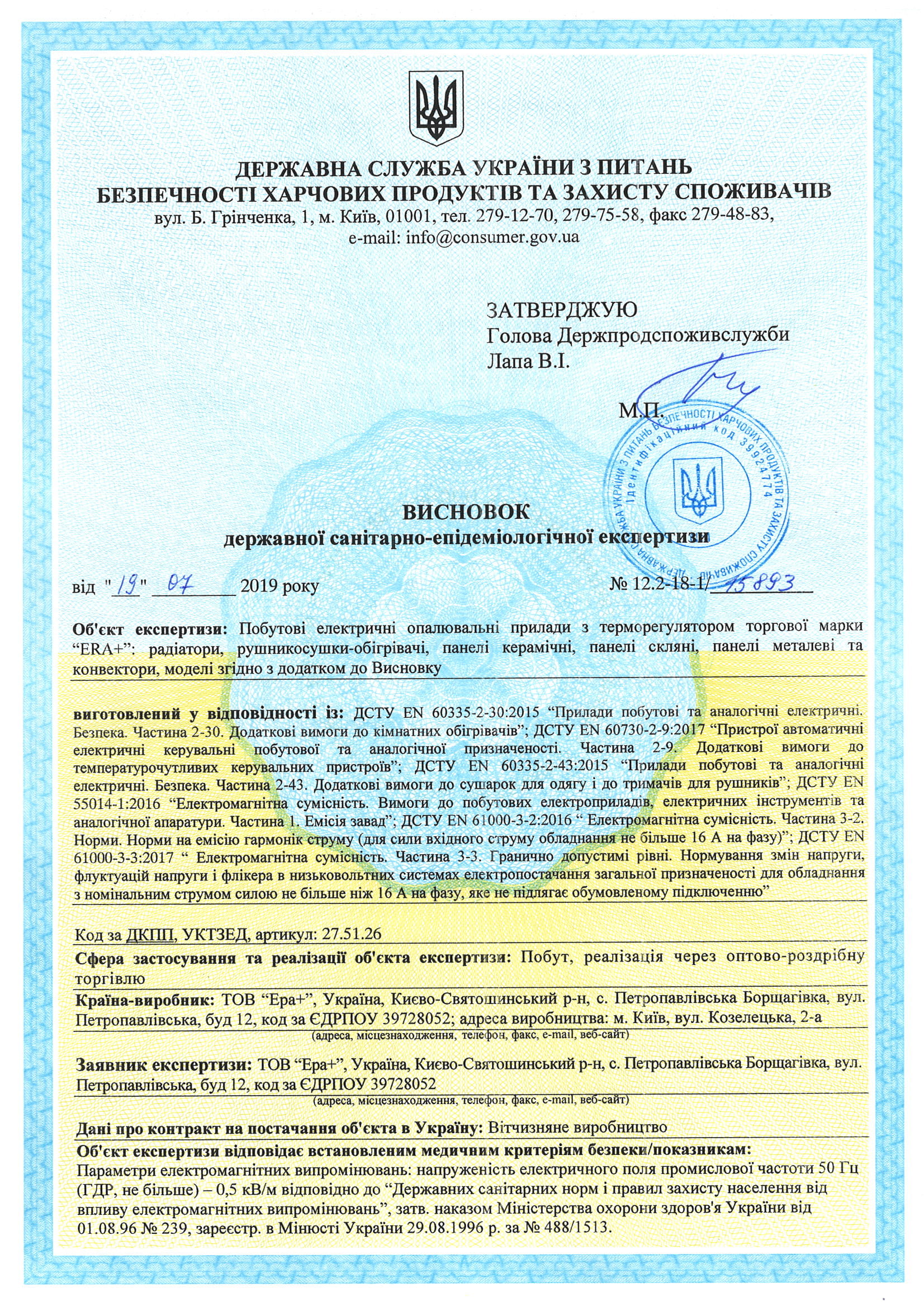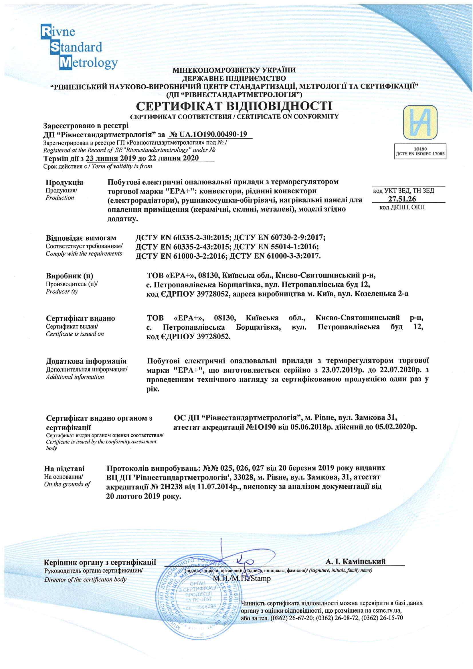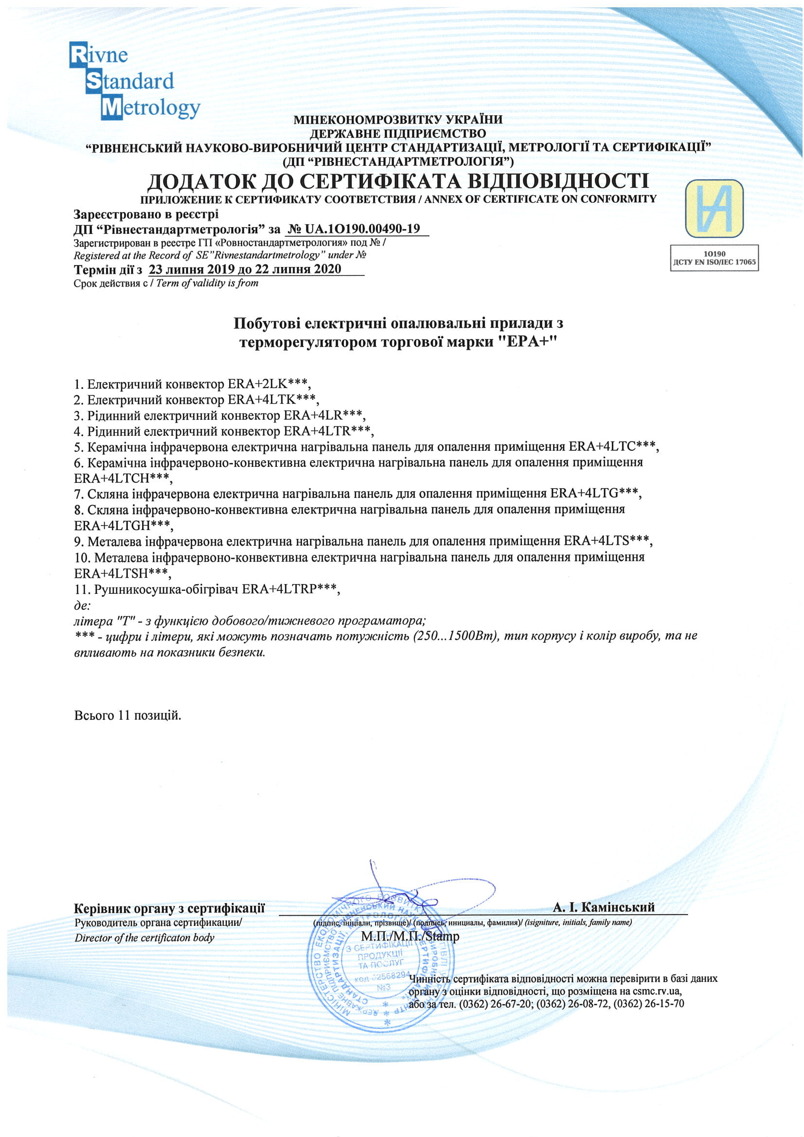 Офіційна гарантія на продукцію Ерафлайм з моменту продажу: