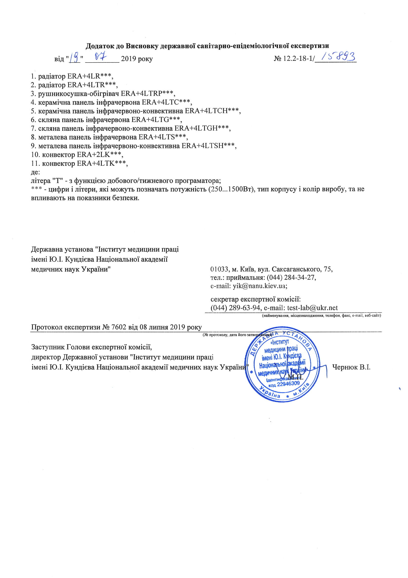 Терморегулятори – 1 рік.