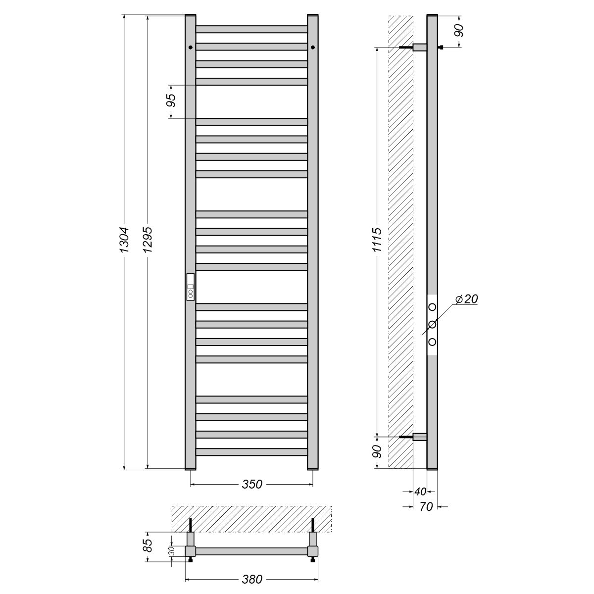 Модель Альфа вдало поєднує функціональність і естетику. Завдяки надійній конструкції рушникосушка забезпечує безпечне й комфортне використання протягом багатьох років. Оптимальні розміри дозволяють зручно монтувати прилад: висота – 1300 мм, ширина – 380 мм, глибина – 55 мм.