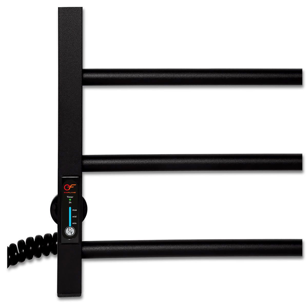 Терморегулятор дозволяє керувати нагріванням рушникосушки, вибираючи один з трьох режимів температури: теплий, середній або гарячий. Є також таймер автоматичного вимкнення на 3 години та функція ЕКО, що допомагає заощадити електроенергію та зберегти ресурси приладу. Функція "Швидкий старт" дозволяє швидко розігріти рушникосушку, а функція збереження обраного режиму роботи забезпечує зручну експлуатацію приладу. Управління терморегулятором просте і здійснюється натисканням однієї кнопки. Термодатчик контролює температуру поверхні рушникосушки, що дозволяє уникнути перегріву. Загалом, чорна рушникосушка не тільки забезпечує зручну та безпечну експлуатацію, але й стане стильним доповненням до будь-якого інтер'єру.