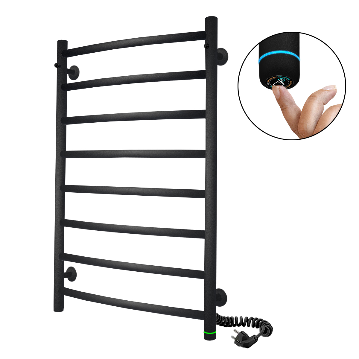 Рушникосушка чорна EF Classic 8 з сенсорним керуванням