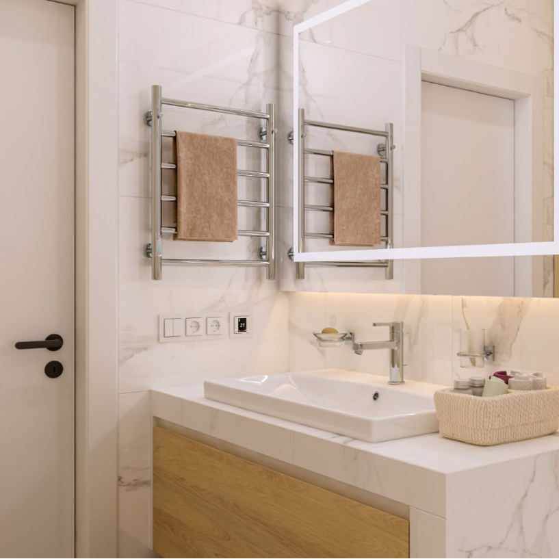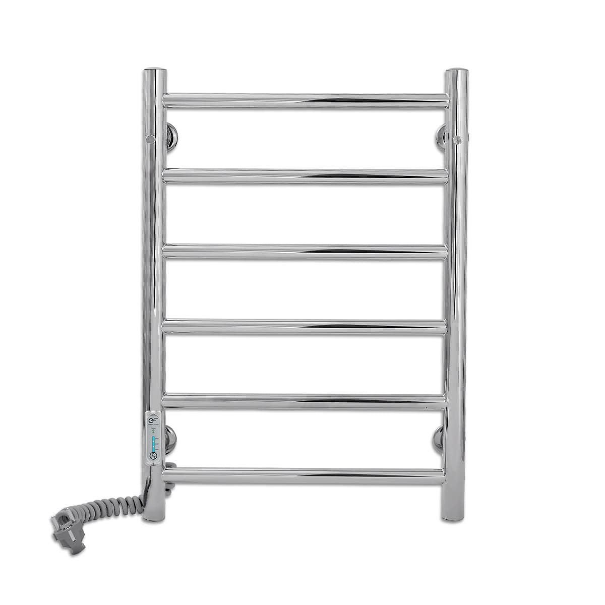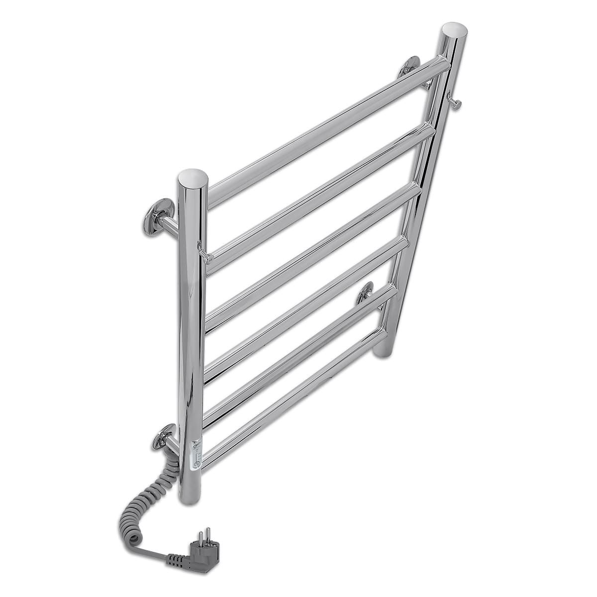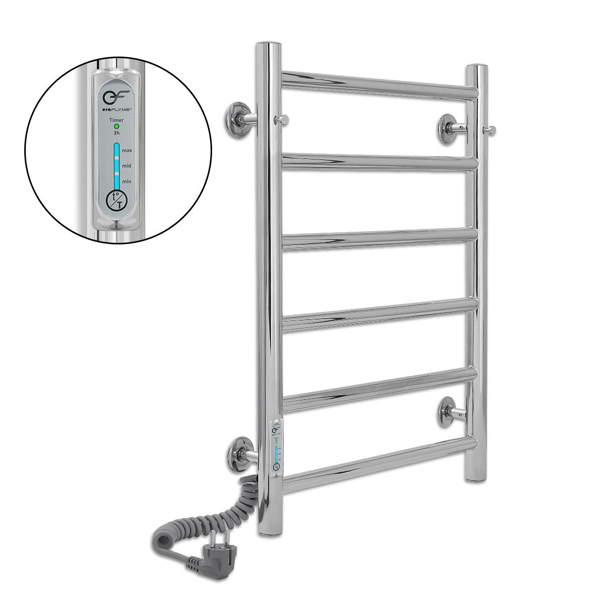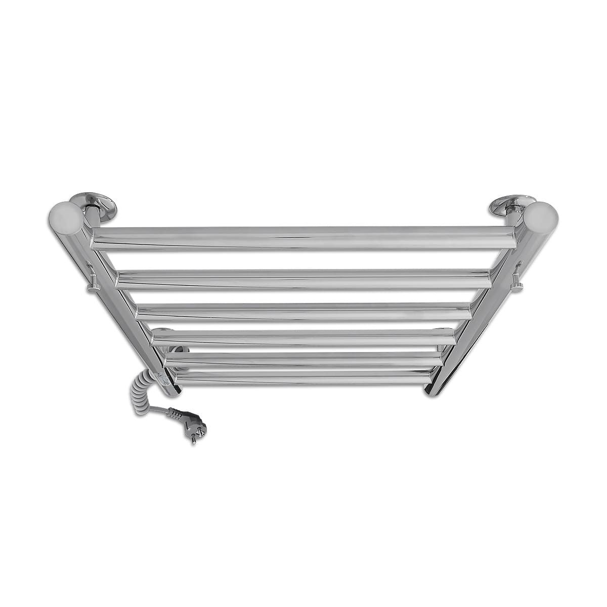 Ця рушникосушка з нержавіючої сталі має дзеркально відполіровану поверхню та призначена для сушки рушників, білизни та одягу. Вона має компактні розміри (ширина 40 см, довжина 60 см) та верхню полку з рейлінгом для зручного розміщення речей. Рушникосушка має терморегулятор, який керується кнопкою "t°/T" та запам'ятовує вибраний користувачем режим роботи. Нагрів рушникосушки має три температурні режими та контролюється мікропроцесорним термоконтролером. Регулятор має кілька переваг, таких як вмикання та вимкнення нагріву приладу, 3 режими температури, таймер автоматичного вимкнення нагріву на 3 години, функція ЕКО для економії електроенергії та збереження обраного режиму роботи. Також є функція "Швидкий старт" для швидкого розігріву.