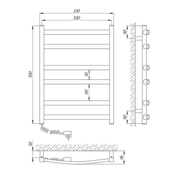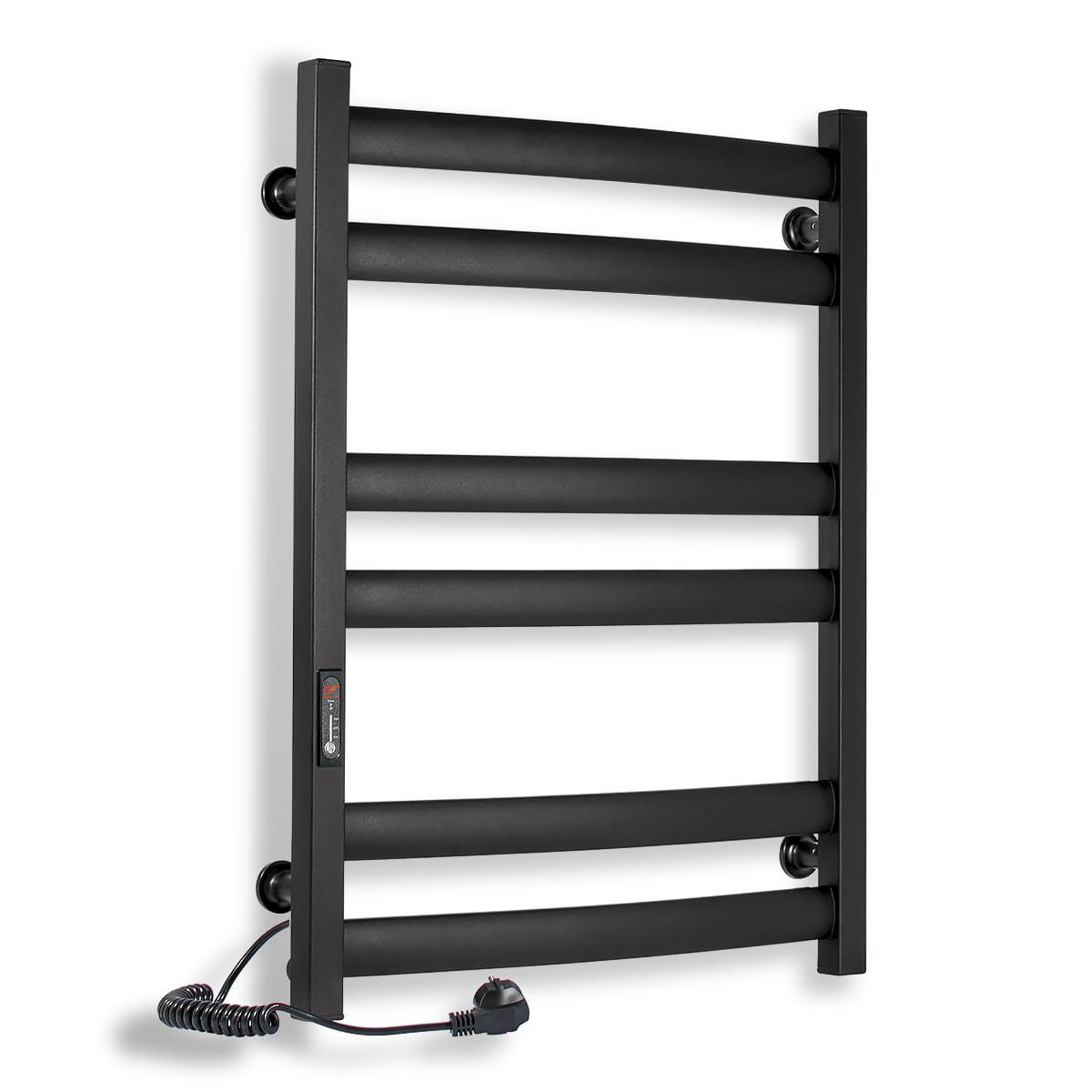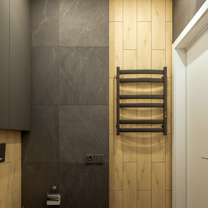 Виготовлена з високоякісної сталі, покрита оригінальною чорною фарбою з матовим ефектом, і має вбудований терморегулятор з таймером. Володіючи бездоганним зовнішнім виглядом, можливістю управління і високою якістю збірки, чорна рушникосушка стане не тільки стильним доповненням інтер'єру, але і забезпечить довговічну, зручну і безпечну експлуатацію приладу. Параметри рушникосушки електричної чорної: висота - 700 мм; ширина - 530 мм; глибина - 96 мм.