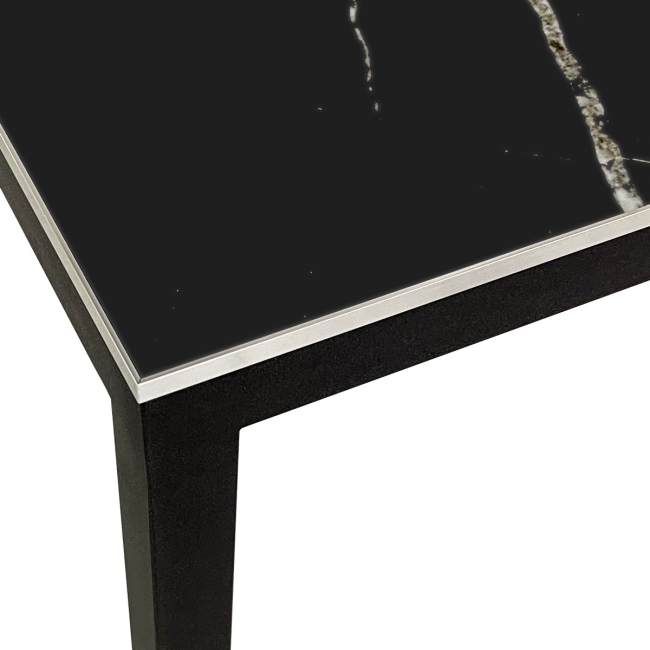 Столешница выполнена с керамической плиты соединенной с закаленным стеклом. Обрамляет керамическую столешницу окантовка с анодированного алюминия. Есть три варианта расцветки окантовки – чёрный, золотой и серебряный, вариант окантовки выбирается индивидуально под ваш заказ.