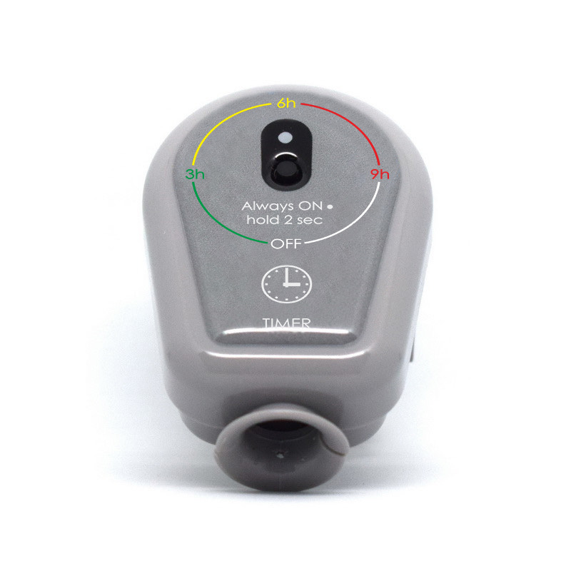 - Режим «Включено постоянно». Без ограничений времени. Включается долгим нажатием кнопки> 2c. Прибор работает постоянно, без ограничений времени. Индикатор равномерно мигает 1 раз в секунду.
